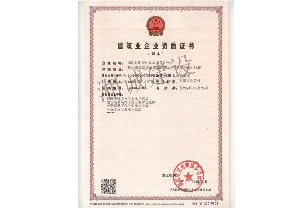 湖南省湘诚建设集团系一家多元化发展的大型集团化民营企业,下辖湖南省湘诚建设集团有限公司、湖南省湘诚投资有限公司、湖南恒海机械设备租赁有限公司、湖南湘诚劳务有限公司四家公司,现有房屋建筑、市政设施建设、机械设备租赁销售、建筑劳务四大主业。 其中,母公司湖南省湘诚建设集团有限公司始建于1999年,注册资金1亿元,总资产6亿元,年产值逾10亿元,具备建筑工程施工总承包壹级、市政公用工程施工.....