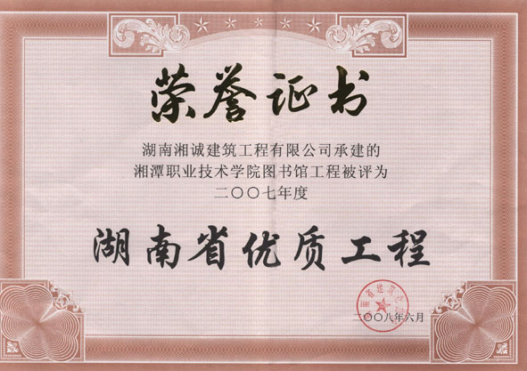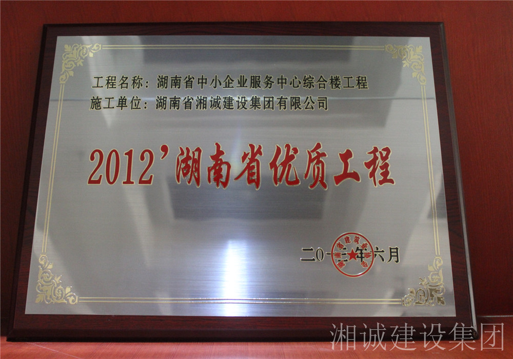 湖南省中小企业服务中心综合楼工程荣获湖南省优质工程、湖南省建设工程芙蓉奖,金微花园1-4栋及地下室工程、益阳移动生产管理中心大楼(综合楼附属楼)工程被评为2012年度湖南省优质工程。