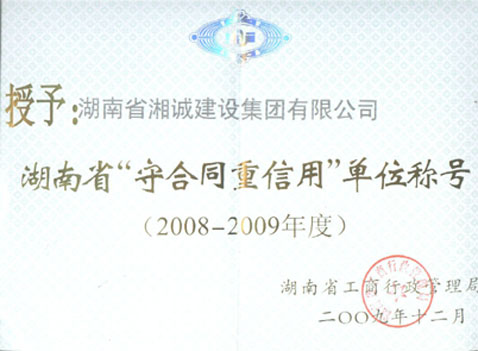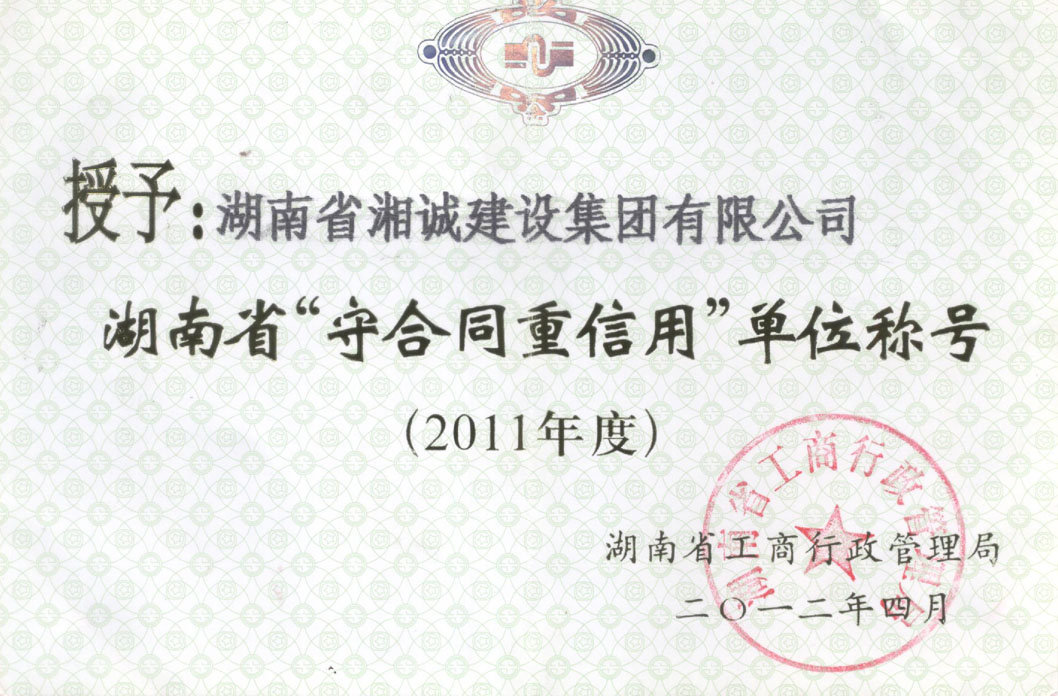 被评为2011年度湖南省“守合同重信用”企业。